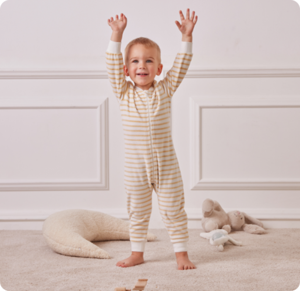 Von den sanften Bewegungen im Babybett bis zu den ersten Abenteuern im Kindergarten – unsere Kollektionen begleiten Babys in jedem Moment.