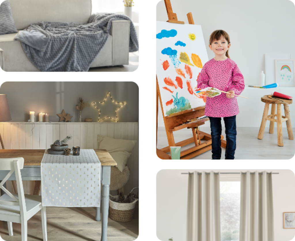 Heimtextilien sind wie Kleider für Ihr Zuhause: Sie geben Ihren Räumen Charakter, setzen Akzente und schaffen ein Ambiente, das Wärme und Individualität ausstrahlt. Praktisch und vielseitig begleiten sie Sie nicht nur im Alltag, sondern auch unterwegs – immer bereit, Komfort und Stil in Ihr Leben zu bringen.